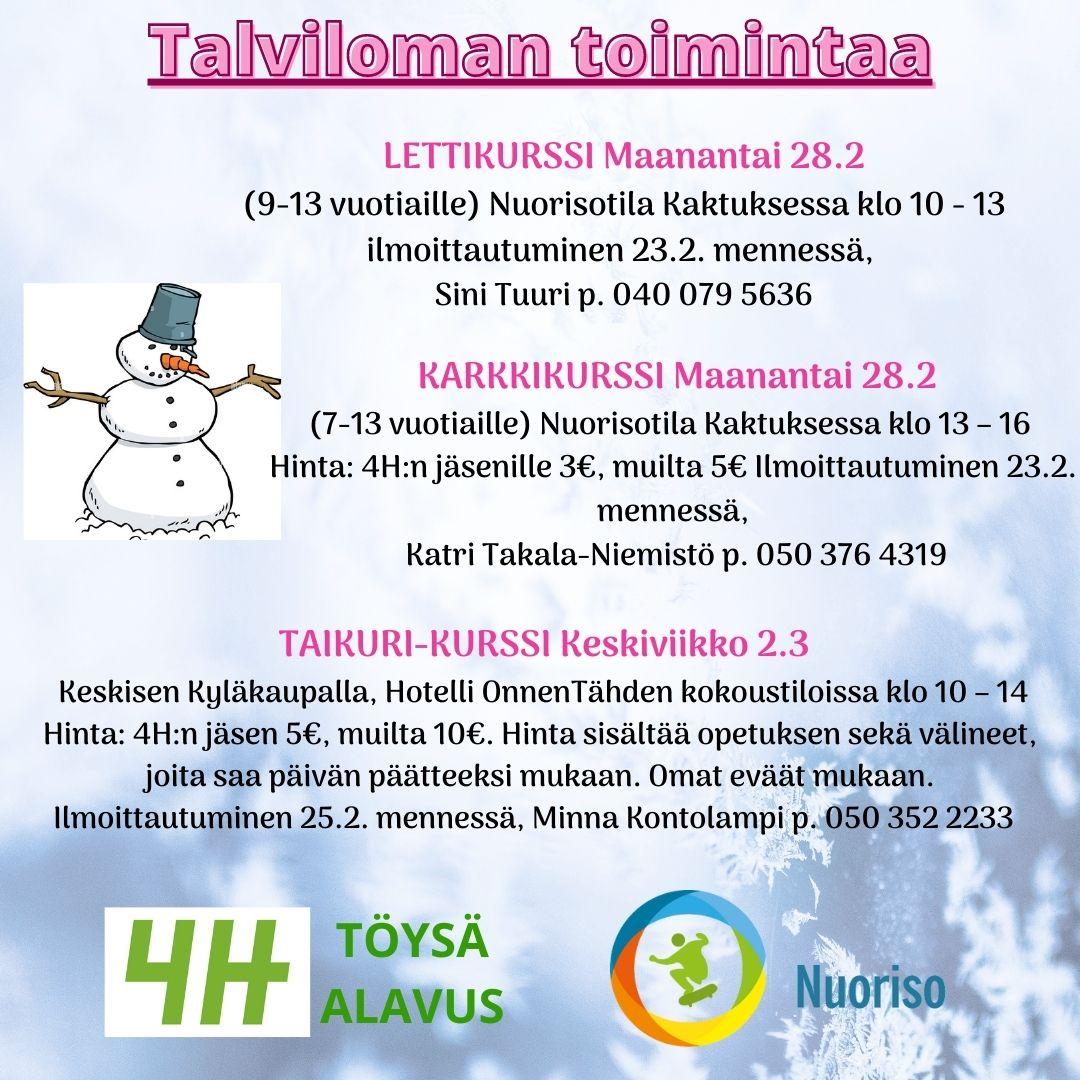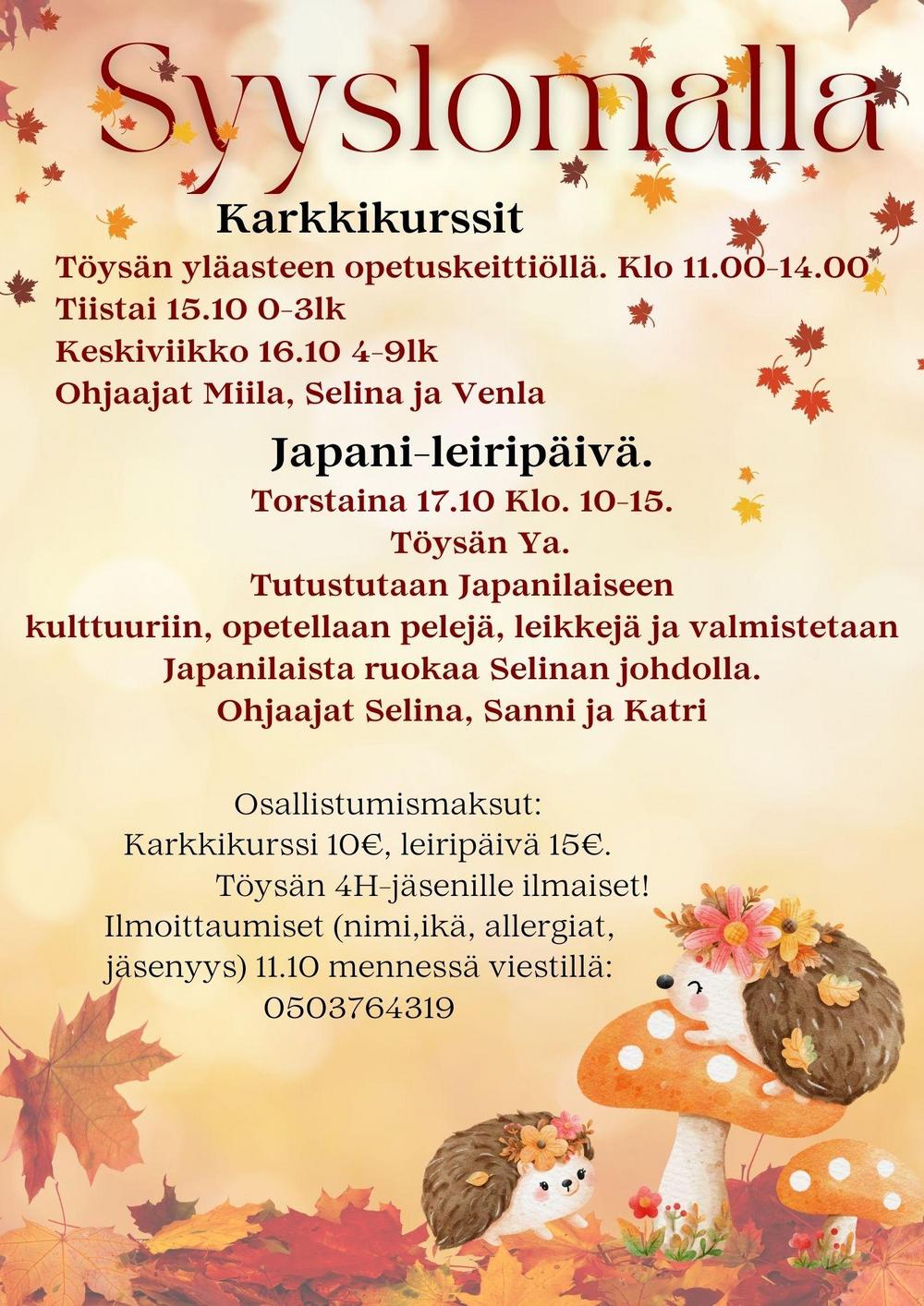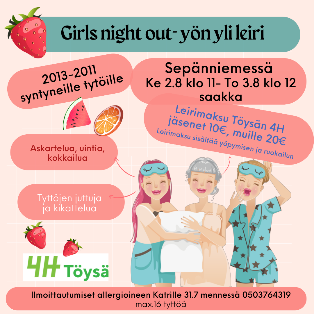 7-12 vuotiaille. Askartelua, leikkejä ja muuta tekemistä. Osallistumismaksu jäseniltä 25€/muut 30€ Ilmoittautumiset Katrille 20.6 mennessä. p.0503764319
